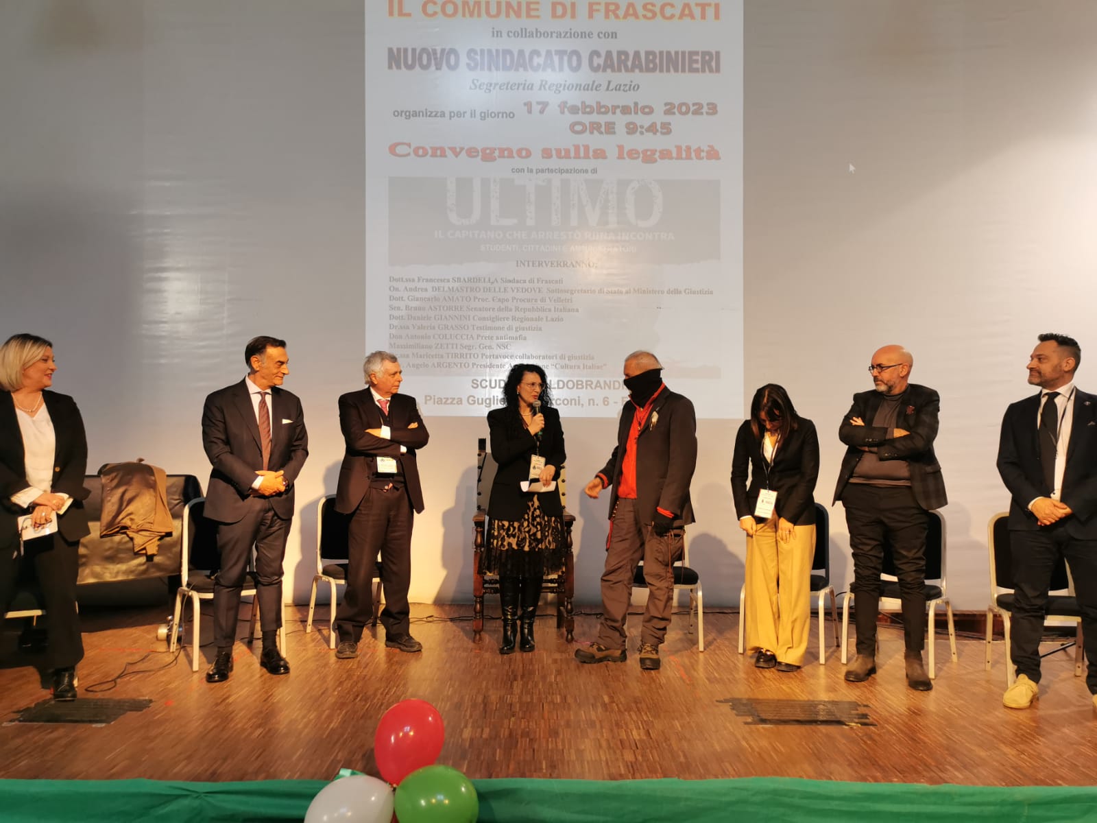 Nel parterre, ufficiali e il comandante della guardia di finanza, dirigenti della Polizia di Stato, assessori ed esponenti delle associazioni cittadine. Per l’Arma dei Carabinieri era presente solo il comandante della stazione locale, nonostante gli inviti ai dirigenti dei Carabinieri di Frascati e del Lazio, ma come ha anche ribadito il Capitano Ultimo: “è comunque più importante la presenza di chi è responsabile diretto dei Carabinieri impegnati nel quotidiano tra la Gente.”