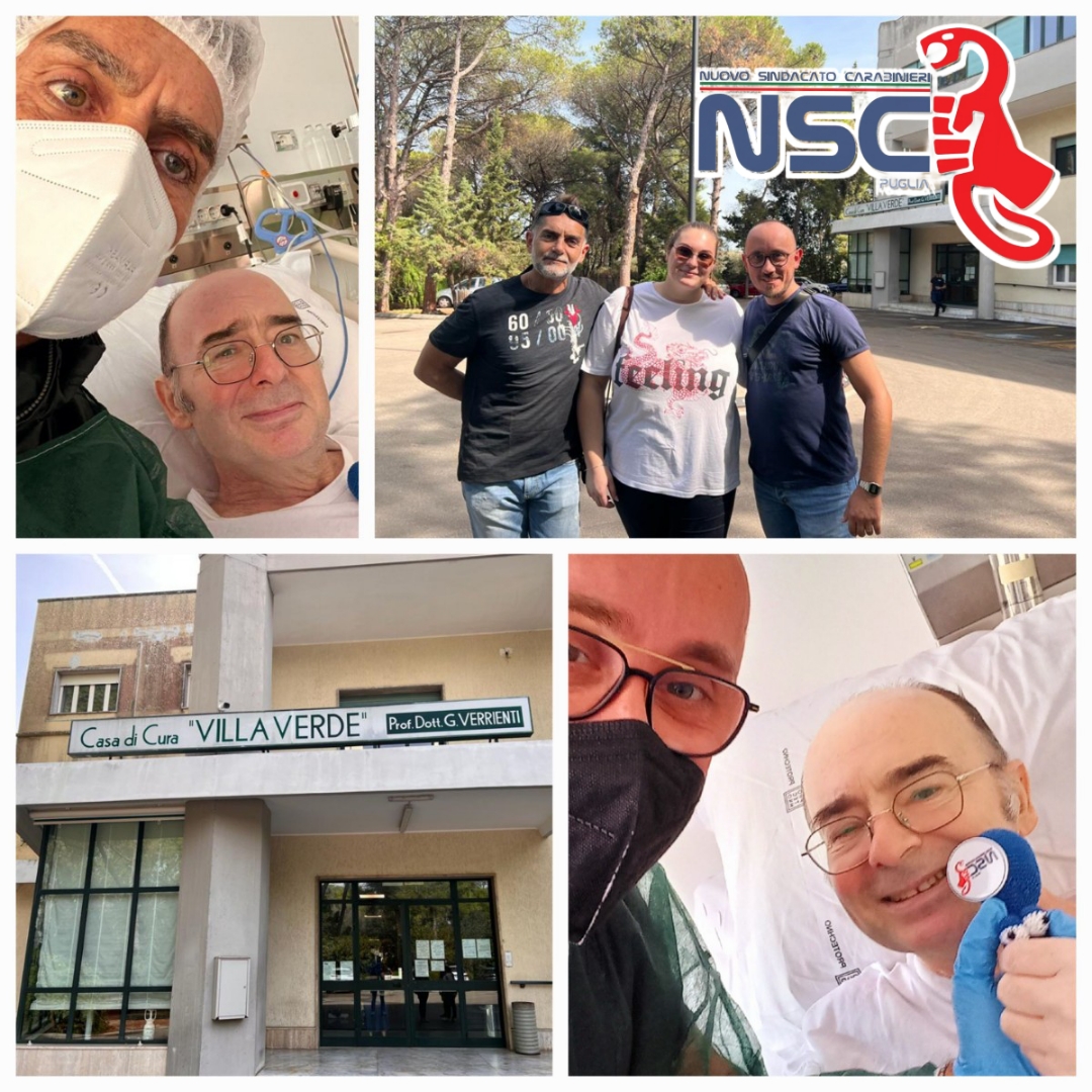 Una delegazione del Nuovo Sindacato Carabinieri Puglia si è recata in visita al collega Giovanni C. ricoverato presso la Casa di Cura “Villa Verde” di Lecce per cure riabilitative a seguito di serie complicazioni dopo due ictus; all’atto della visita, Giovanni ha raccontato: «La più grande avventura della vita è lottare per sé stessi. Attorno a me avevo tanti amici, tanti colleghi che nel momento del bisogno si sono dileguati. All’improvviso mi son trovato in un pozzo nero, dove in alto, molto in alto vedevo una luce, ma d’un tratto son risalito con le mie sole forze. Accanto a me la mia famiglia, nessuno ha mai pensato di venirmi a trovare, nemmeno i miei comandanti, ora ci siete voi, mi date forza e speranza, grazie per quello che fate per me e la mia famiglia».